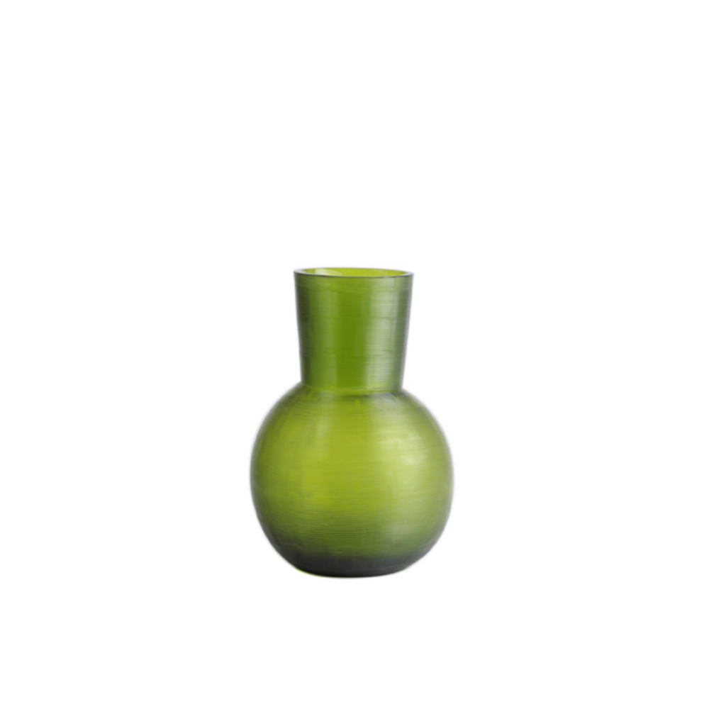 De GUAXS vaas Yeola in de kleur Lichtgroen is een handgemaakt designobject van mondgeblazen glas met een verfijnd, handgesneden oppervlak.
