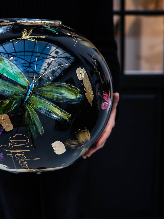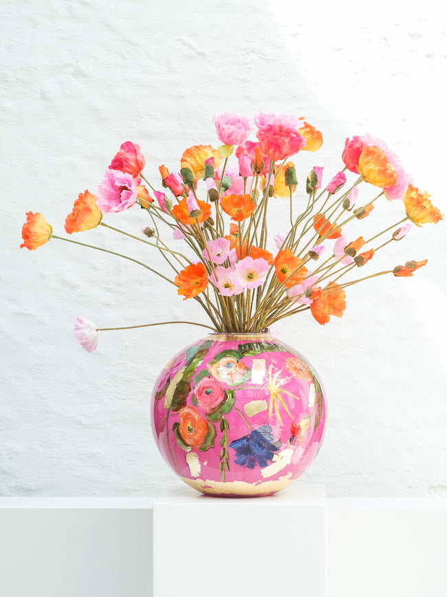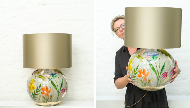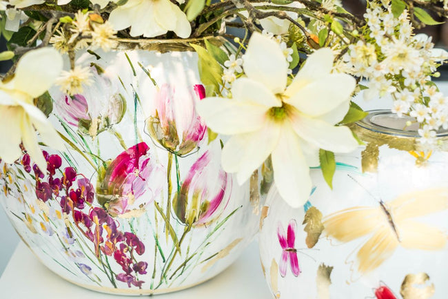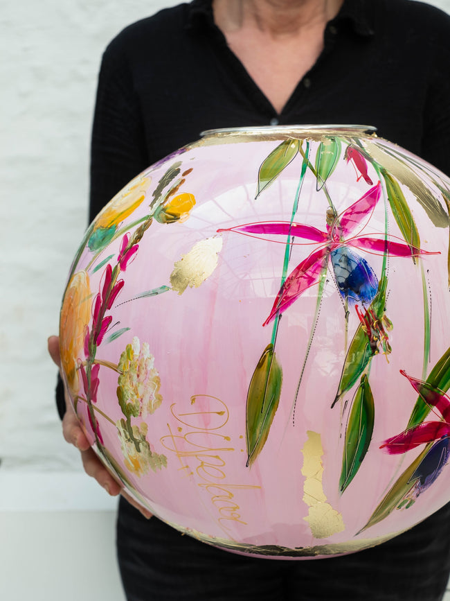 "Doortje is vanaf haar jeugd al gefascineerd door de natuur en de mens. Dit inspireert haar en beïnvloedt haar gedrevenheid om dit in heldere krachtige kleuren en in dikke lagen op het doek te zetten. Werkend vanuit haar gevoel heb ik ontdekt om op dezelfde manier glazen objecten te beschilderen. Alledaagse elementen worden soms uitbundig en dan weer ingetogen vertaald en stralen ineens iets moois uit." De vazen van Doortje Ijpelaar worden in beperkte oplage met de hand beschilderd, en zijn een absolute eye-catcher in het interieur.