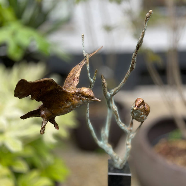 Jonneke Kodde is bekend van haar ranke dynamische vogelsculpturen, maar ook in haar andere beelden is de dynamiek en abstractie karakteristiek weergegeven.