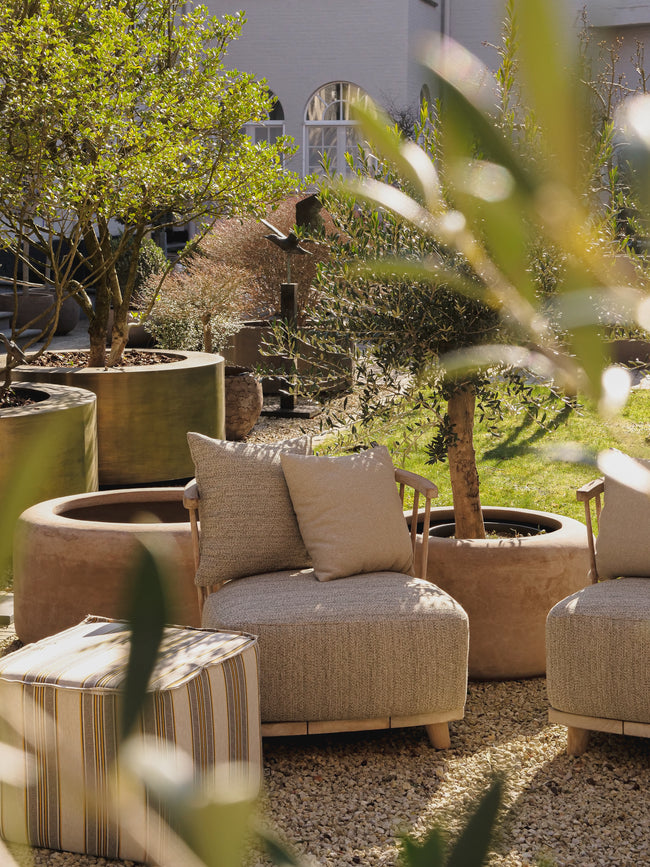 Of u nu kiest voor een royale eettafel, comfortabele loungestoelen, een modulaire loungeset, een ligbed of een stijlvolle salontafel – elk stuk is ontworpen om perfect te integreren in tuinen, terrassen en poolhouses. Zitcomfort staat centraal. Daarom werkt GOMMAIRE uitsluitend met hoogwaardige buitenkussens, afgewerkt met Italiaanse outdoorstoffen die niet alleen duurzaam, maar ook luxueus en aangenaam aanvoelen. Alle kussens worden op maat en op aanvraag geproduceerd en zijn verkrijgbaar in diverse kleuren en stoffen, zodat u een persoonlijke touch kunt geven aan uw outdoor interieur.